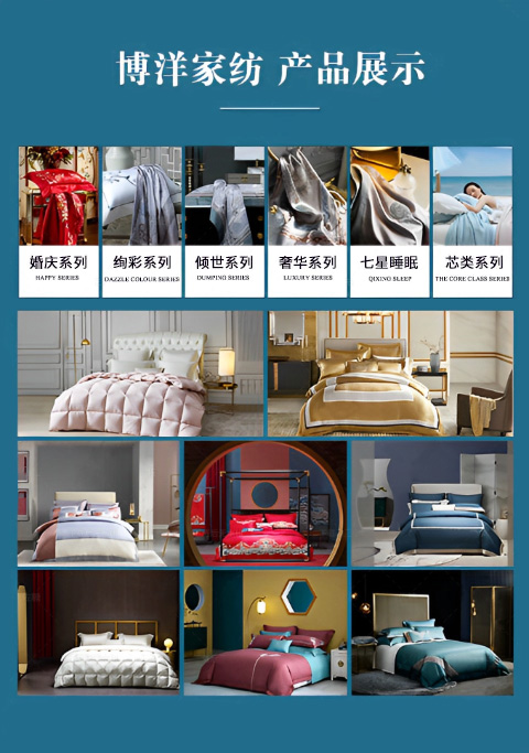 博洋家紡成立于1995年,是國內(nèi)率先提出“家紡”概念的紡織企業(yè),也是國內(nèi)首家啟用代言人的家紡品牌。一直以來,博洋家紡以全方位產(chǎn)品點(diǎn)綴居家生活;獨(dú)特設(shè)計魅力、溫馨舒適風(fēng)格、高雅產(chǎn)品品質(zhì),博得了眾多消費(fèi)者的青睞。