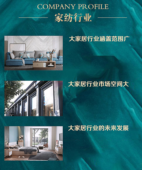 數(shù)據(jù)顯示,泛家居行業(yè)每年近4萬億的市場份額,其中家用紡織行業(yè)有3000億的市場規(guī)模,并保持著平穩(wěn)的增速逐年增加。