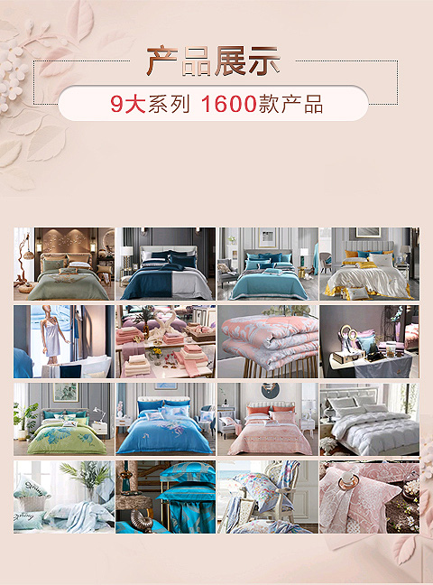 擁有禮盒套件、被子、枕芯、蓋毯、床墊、毛浴巾、居家服飾、夏令用品、酒店用品等九大系列。其中兩絲(天絲、真絲)兩絨(磨絨、羽絨)產(chǎn)品作為凱盛核心產(chǎn)品頗受消費者青睞。