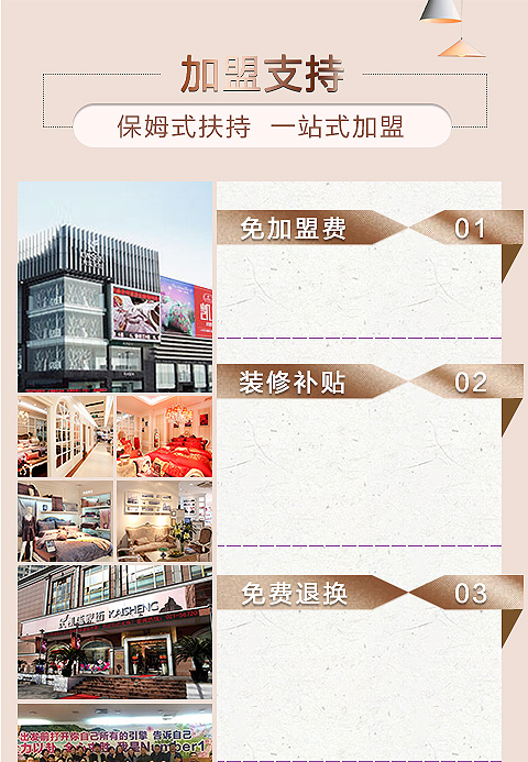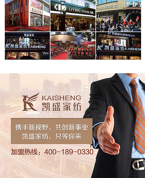現(xiàn)在加盟凱盛家紡享9大優(yōu)惠加盟支持!免費獲取詳細加盟優(yōu)惠政策、加盟條件、產(chǎn)品圖冊、投資詳情資料,敬請留言或電話垂詢。