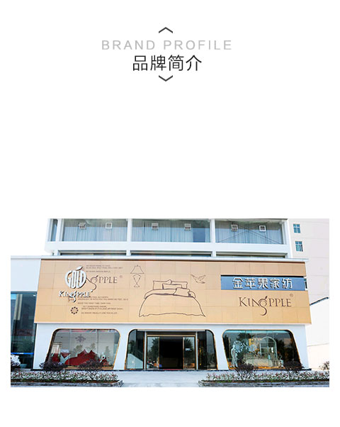 金蘋果專注研發(fā)、生產(chǎn)家紡,2001年成立至今,已慢慢成為江浙地區(qū)的家紡品牌老大