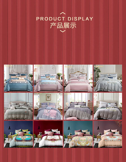 公司產(chǎn)品系列滿足各種層次不同喜好的消費群體的需求:有婚慶系列、尊貴系列、優(yōu)雅系列、浪漫系列、時尚系列、兒童系列、被芯系列、枕芯系列、毛毯系列、家飾系列、夏令用品系列。