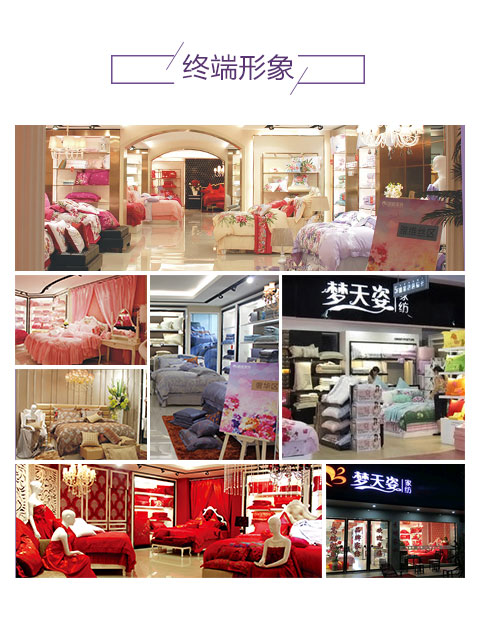 “夢(mèng)天姿”是上海明超床上用品有限公司旗下的主打品牌,是為數(shù)不多的能夠自主生產(chǎn)單件、四件套、多件套、被子、枕芯、涼席、蚊帳、兒童用品等床上用品全系列品牌之一。