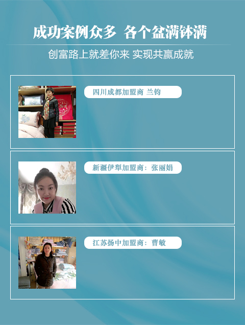 現(xiàn)在加盟羅曼羅蘭家紡享9大優(yōu)惠加盟支持!免費(fèi)獲取詳細(xì)加盟優(yōu)惠政策、加盟條件、產(chǎn)品圖冊、投資詳情資料,敬請(qǐng)留言或電話垂詢。