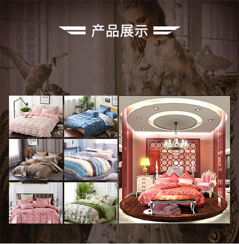 公司目前主要生產(chǎn):配套床上用品、床罩、被套、被芯、枕芯、床墊、床單、涼席、中藥保健床品、窗簾、毛毯、巾類(lèi)制品等12大類(lèi),1000多種花樣的床上用品系列產(chǎn)品。