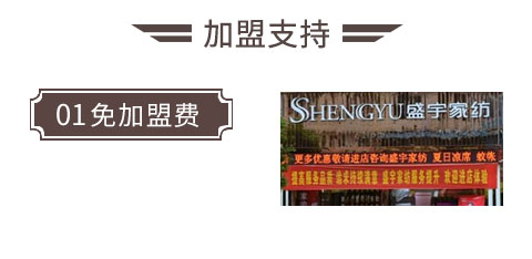 現(xiàn)在加盟盛宇家紡享9大優(yōu)惠加盟支持!免費(fèi)獲取詳細(xì)加盟優(yōu)惠政策、加盟條件、產(chǎn)品圖冊(cè)、投資詳情資料,敬請(qǐng)留言或電話垂詢。