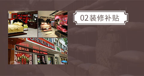 公司為降低新加盟商開(kāi)店成本及經(jīng)營(yíng)風(fēng)險(xiǎn),給予加盟商裝修補(bǔ)貼支持,補(bǔ)貼金額依照店面實(shí)際面積大小給予,店面越大則補(bǔ)貼金額越高。